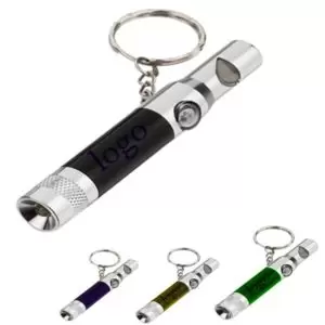 3-in-1 Survival keychain with LED Flashlight, Mini compass and Whistle. Rotary twist switch for Flashlight. Made of Aluminum alloy. 3* AG13 batteries included. Size: 3.62″ L x Dia 50″. Price includes Logo laser imprint . Free shipping and delivery by Air door to door